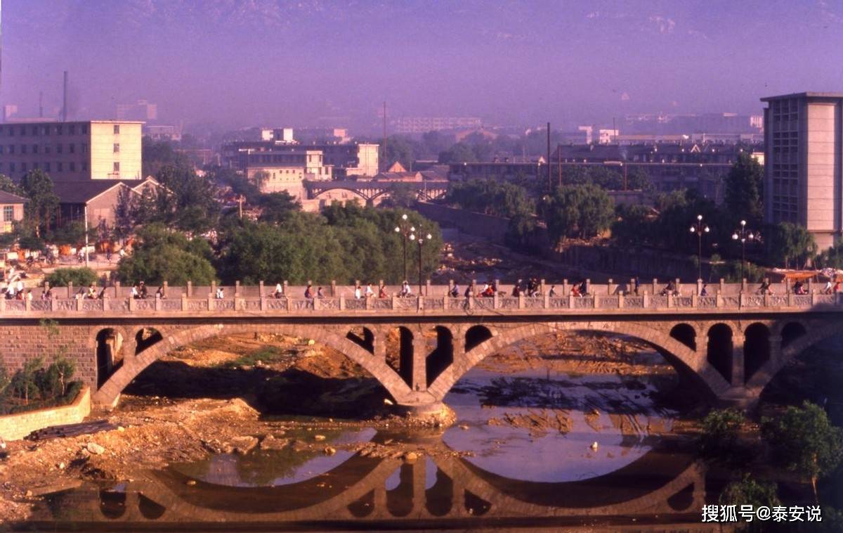在1984年的时候,泰山大桥周边环境逐步提升,奈河的水也变得充盈,从照片中除了看到标志性的泰山大桥,还看到了同样是泰安标志性城市建筑之一的泰山饭店,可见这张1984年的照片呈现场景极为珍贵。