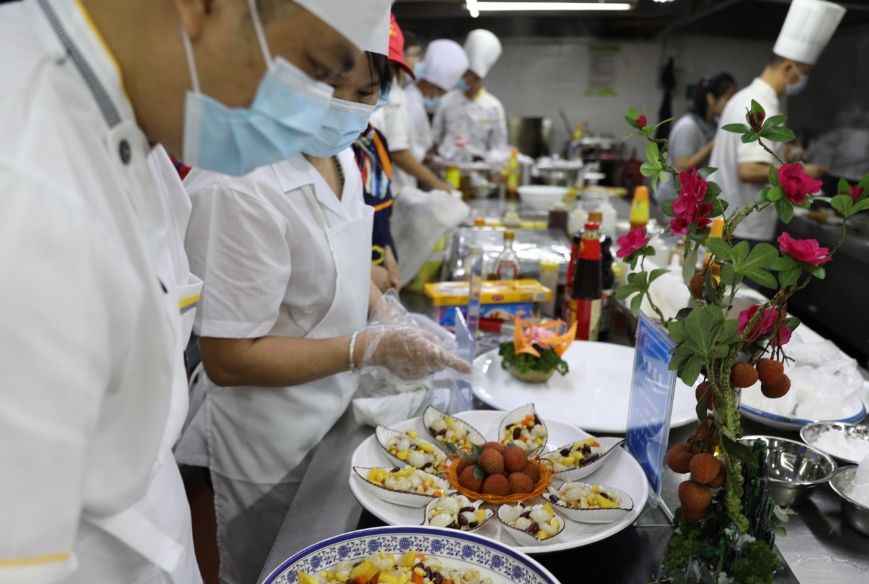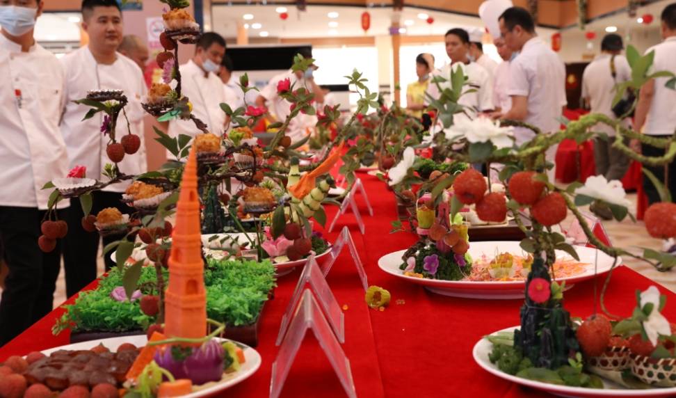 精准的刀工、飘香的食材、创意的摆盘……厨师们纷纷使出浑身解数,各显神通,烹制出一道道极具荔枝风味特色的精美菜肴,为现场评委以及食客们带来了一场味觉与视觉上的饕餮盛宴。