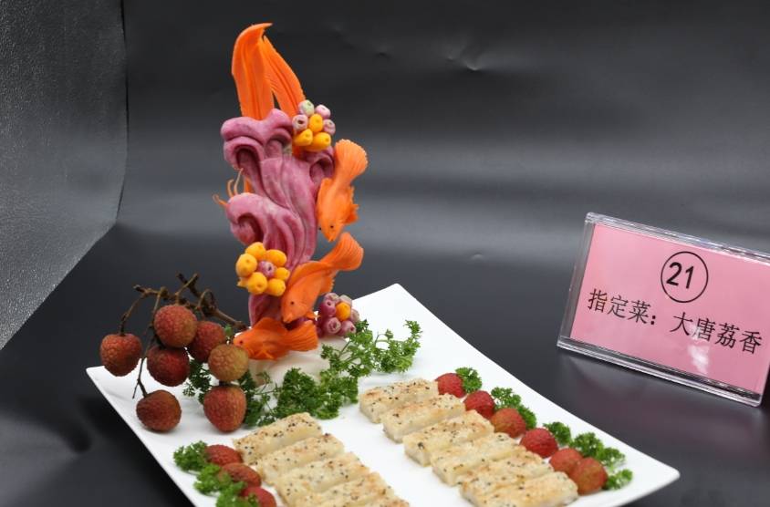 本次比赛要求参赛队伍在指定时间内,以高州荔枝为食材(或元素),烹饪指定菜肴“大唐荔香”和“自创菜”各一款。由3位专家评审从外观、品尝、创意等进行现场评分。