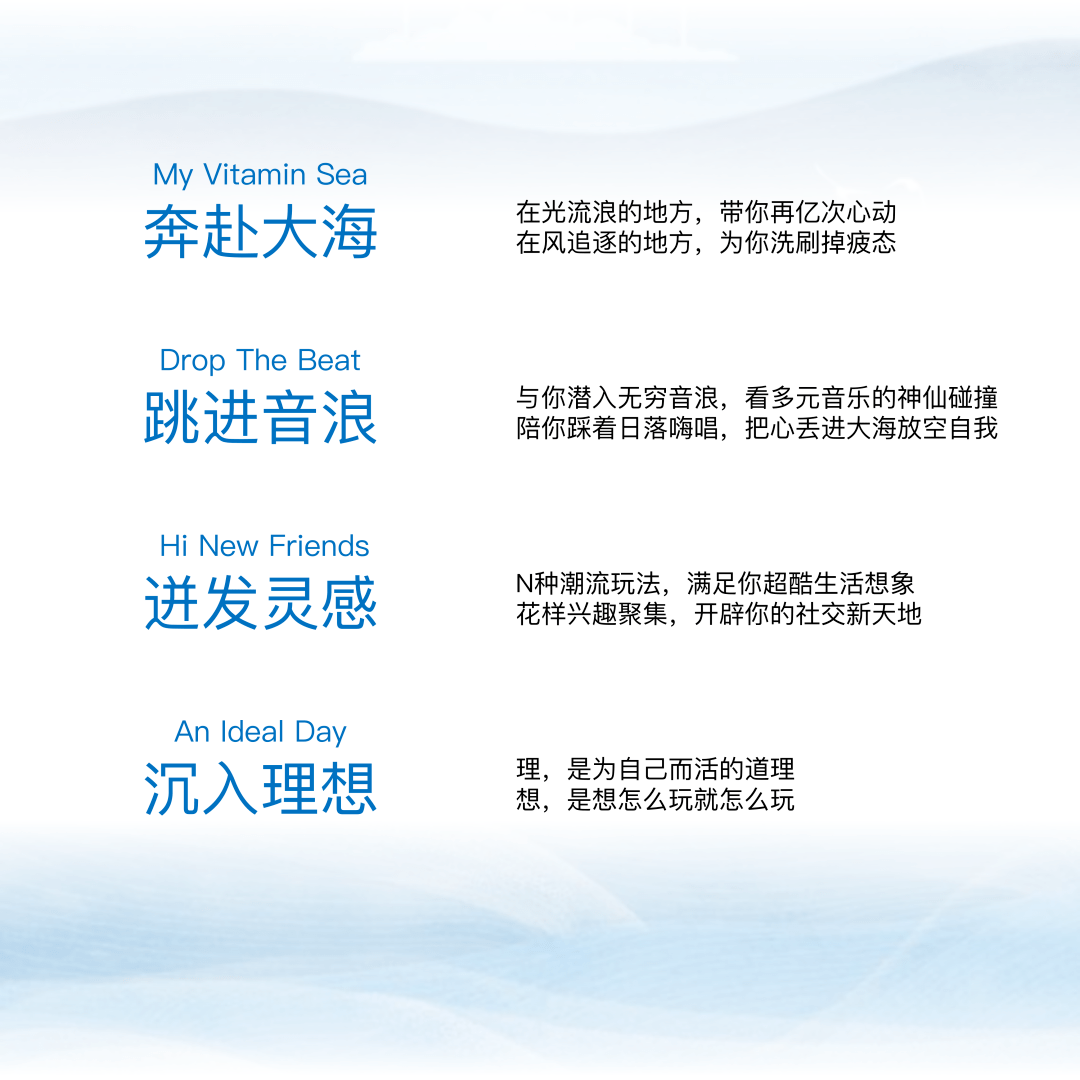 够野的音乐舞会,够爽的海边运动,够潮的沙滩集市、够酷的天幕露营与房车.....期待热爱生活、守卫蓝海的你,在限定的星期八中,完成一次乌托邦式的理想派对!