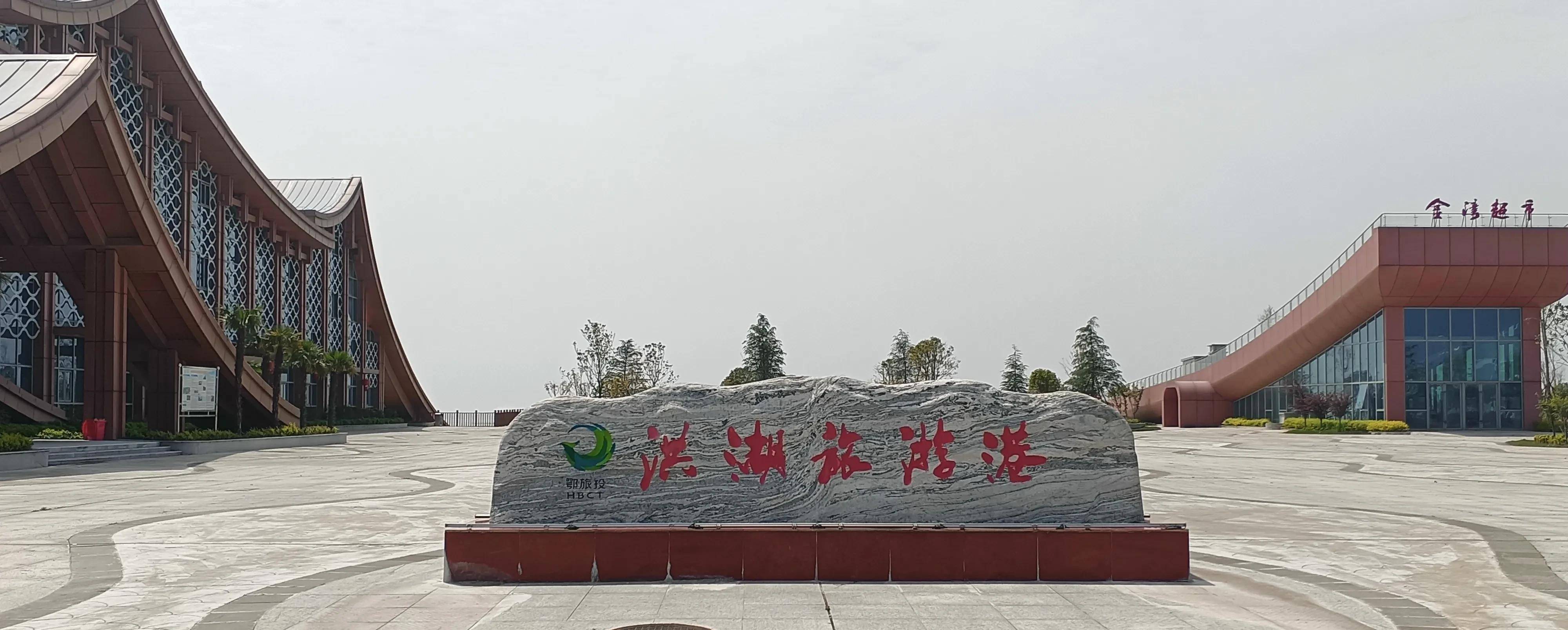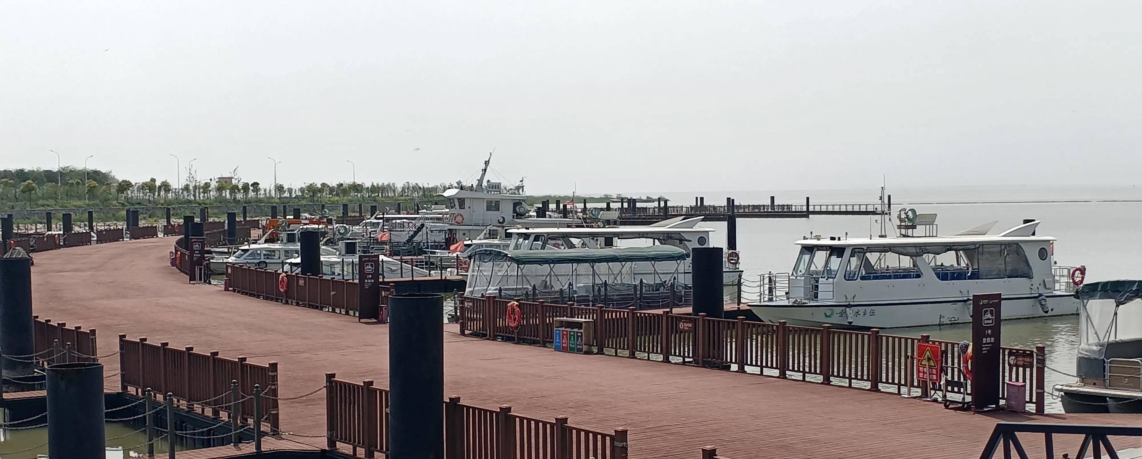 洪湖旅游景区还在开发建设中,游人很少。很多游船都停靠在码头那里。