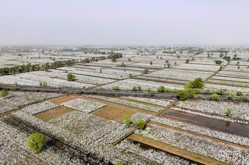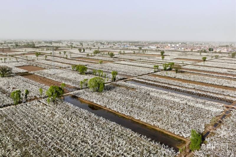 央广网吕梁4月15日消息(记者任重)“忽如一夜春风来,千树万树梨花开”,唐代诗人岑参笔下的美景在这个春日再度上演。日前,位于山西吕梁市文水县的12万亩梨花竞相绽放,从空中俯瞰,洁白的梨花如漫天飞雪,一阵春风拂过芳香四溢,尽情开放的梨花在明媚的春光下形成一片片白色花海,美不胜收。