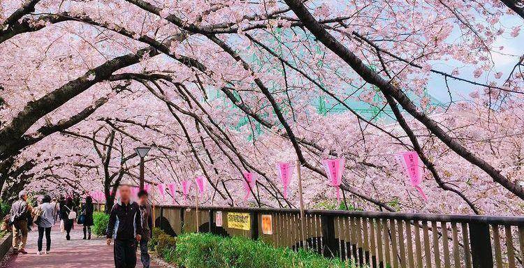 放眼望去一片宽广无际的河道,搭配上两旁满满的樱花树,这样的景色和中目黑大有不同。避开拥挤的人潮,您绝对可以在此拍到最美的画面。
