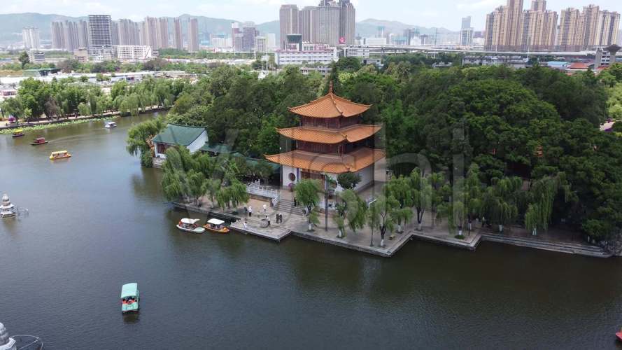 始建于康熙年间。因其面临滇池,远望西山,尽揽湖光山色而得名。由清代名士孙翁所作180字的长联,垂挂于大观楼临水一面的门柱两侧,号称“古今第一长联”。