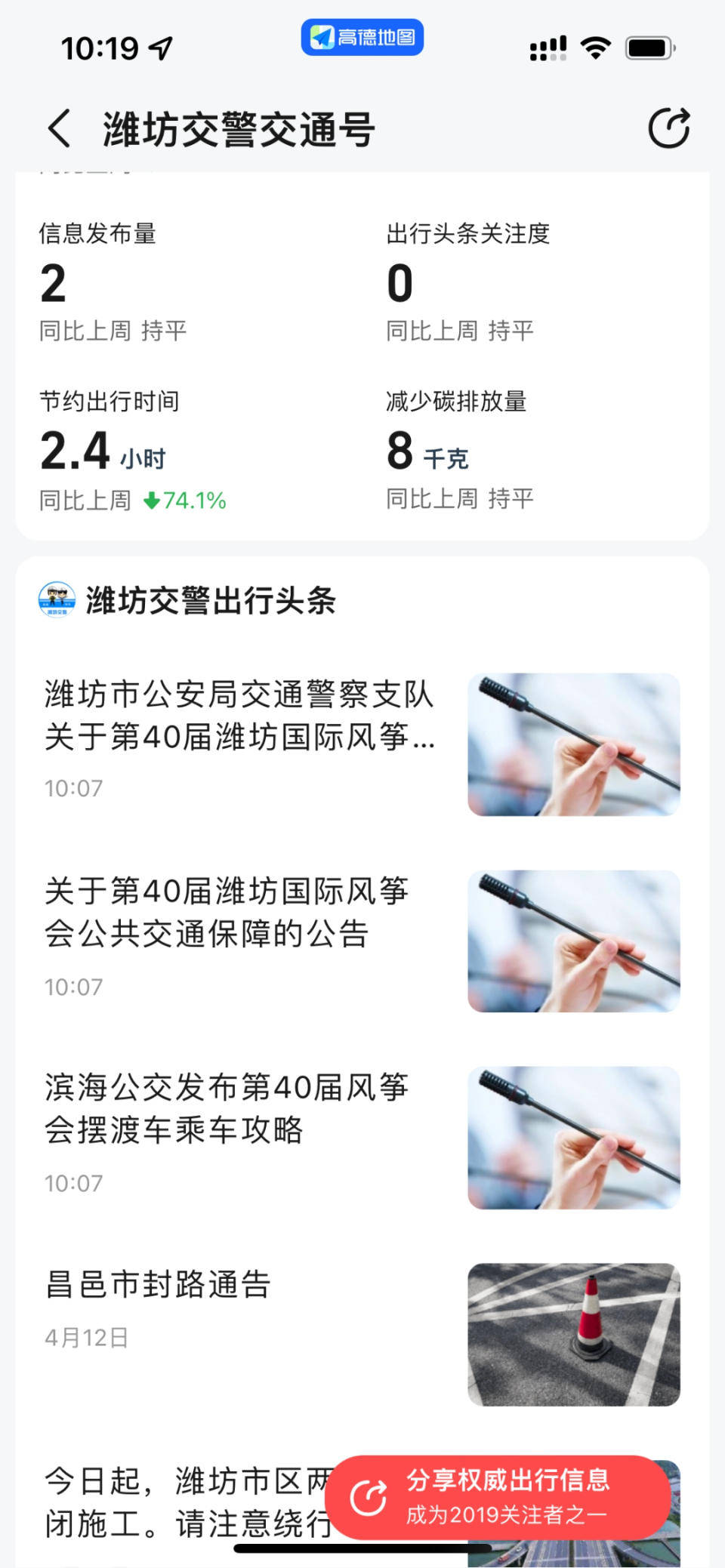 (潍坊公安交警通过“潍坊交警交通号”向市民推送风筝会期间的相关出行公告&建议)