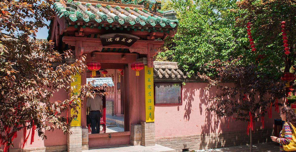 继续往内走,则到了莺莺院,又称为“梨花深院”、“崔居别院”,其很具有北方三合小院风格,这里也是《西厢记》中最关键的建筑之一,剧中的“请宴”、“赖婚”、“私会”、“拷红”等剧情,都是在这里发生的。西厢房便是莺莺的住居,而在此院的东厢房墙下,有一棵杏树,这便是剧中的张生私会崔莺莺的地方,有诗云:“待月西厢下,迎风户半开。隔墙花影动,疑是玉人来”,现在这里也是情侣来此必打卡的地方。