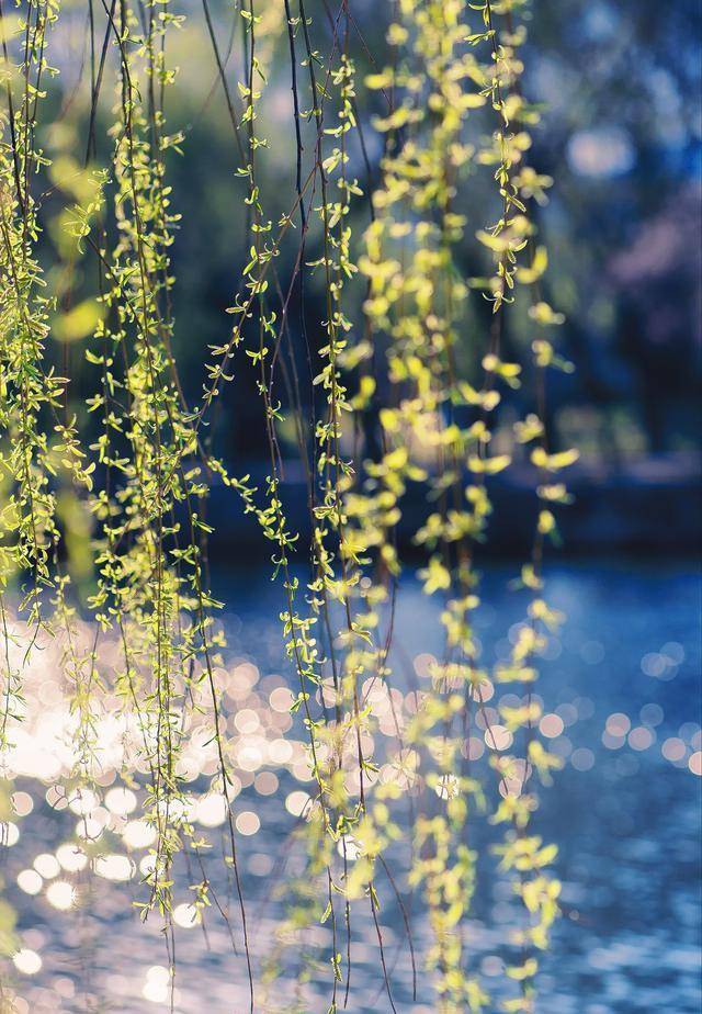 融融春光下,柳丝尽情飞舞,如翠浪翻空。