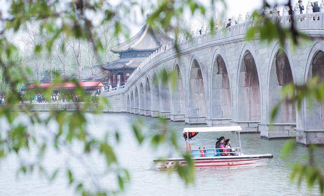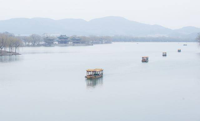站在绣漪桥上,远眺昆明湖。千里烟波,暮霭沉沉,野渡横舟,空谷淡雾。眼前的画面像极了一副温润的水墨画。
