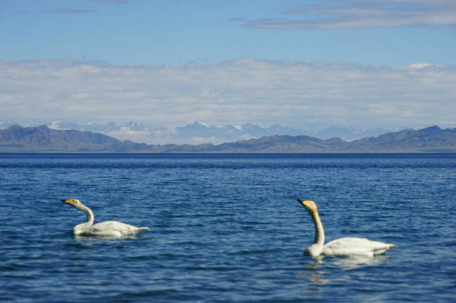 由于赛里木湖特殊的地理和温润的天气,即便是新疆最炎热的7月份来到这里,依然可以感受到凉爽的气息,湖水仅仅只10度,堪称是冷水湖,于是这里也成为了很多候鸟的避暑胜地。当你来到赛里木湖旁,还可以看到几只天鹅,就是此刻迁移过来的鸟类。