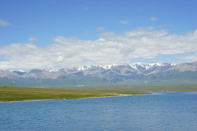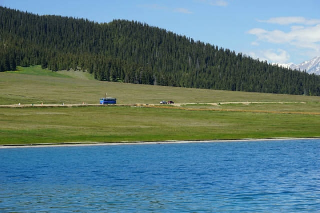 其实每年的6月份是赛里木湖最美的时刻,湖边陆陆续续开起了各种野花,色彩斑斓的将赛里木湖装点得美轮美奂,在远处群山的映衬下,整个赛里木湖看起来更为绚烂。和青海湖一样,赛里木湖同样有一条环湖公路,一边是湛蓝色的湖水,一边是翠绿色的草甸,不论是自己抑或是骑行,都可以感受到这种浩瀚的美丽。