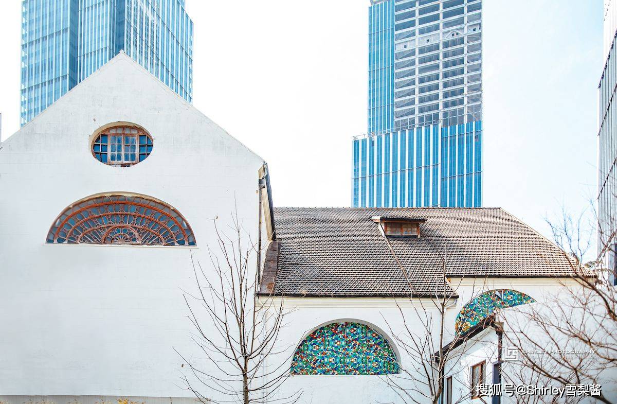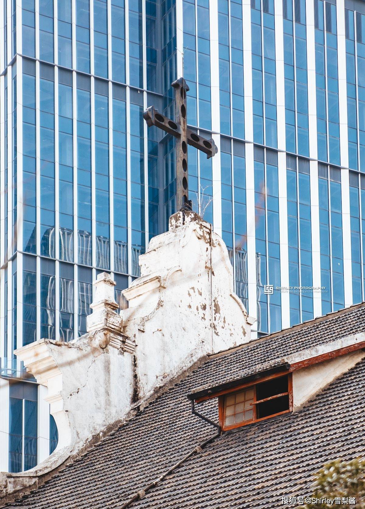 如果关注到老虎窗、山墙背面等细节的话,你能发现这座沧桑斑驳的老教堂与一旁新建的大楼之间,存在明显的时空割裂感。
