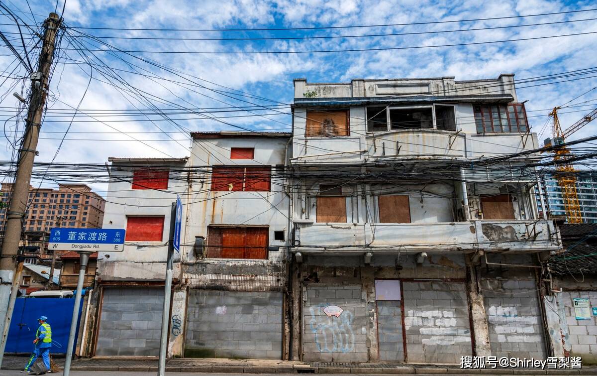 这几年我都有来这一带拍摄,目及之处都是千疮百孔的老房子,与人去楼空的寂静街道。如今,董家渡教堂所在地,已在人们的遗忘中基本完成了新旧交替。随着上海南外滩地区的全面开发,见证百年上海的董家渡地区已经换了人间。宽敞现代的马路,拔地而起的摩天大楼成了这里的主角,依旧看不到人的街道让这里仿佛一处城市里的平行世界,充满魔幻色彩。