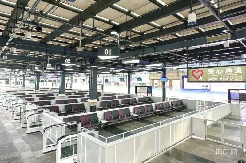 全新的出租车候车区还实现了智慧化候乘。在候车区现场显示屏上,会实时播报显示16条通道开放状态,每条排队通道入口均配置一套闸机,闸机开启功能与大屏联动,排队出口上方均设有显示屏用于显示等待时间、通道开放状态等,借助智慧化手段提高了现场管理效率及旅客服务质量。