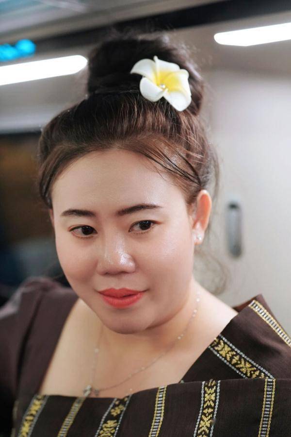 我在车上遇到了一位老挝的小姑娘,叫林茵乐,英文名是LamphoneTHIPMALA,今年27岁。她是老挝铁道职业技术学院的老师,目前在昆明铁道职业技术学院培训,和她一起培训的还有四十位左右的老师。到今年八月份培训期满,他们就要回到老挝,为这所新成立的学校,教授第一批学生。将来,昆明铁道职业技术学院也还会派教职员工,到老挝铁道职业技术学院进行交流,传授教学和管理经验。作为中老铁路交流的见证者和实践者,这次中老铁路开通,她和其他四位同事被邀请上车体验。两年前来培训的时候,她是坐飞机来的,现在,她可以坐火车回家了。机票的价格大体是火车的三倍左右,一张机票的价格大约相当于普通老挝民众一个月的收入,所以火车票的价格,非常有优势。这次体验,对她来说有一个很大的遗憾。因为学校的纪律要求,她只能坐火车到中国国内的最后一站,磨憨站,不能直接坐火车回家。林茵乐说她家三个姊妹,她是家里的老二,她很想念妈妈,她妹妹刚刚生了一个儿子,胖胖的很可爱。她一边给我展示手机里的外甥的视频,一边说,好想回家啊。