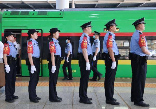 进站以后,发现站台上已经有很多工作人员在忙碌了。乘务组在列队集结,看着他们挺拔的站姿,就能体验到他们创造历史的自豪感。