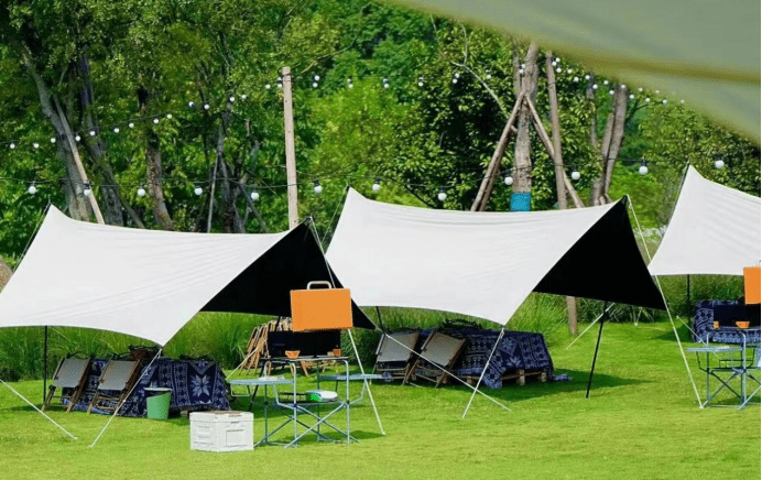 露营基地通常会有⼏⼤区域:⽣活区、娱乐区、商务区、运动休闲区等。