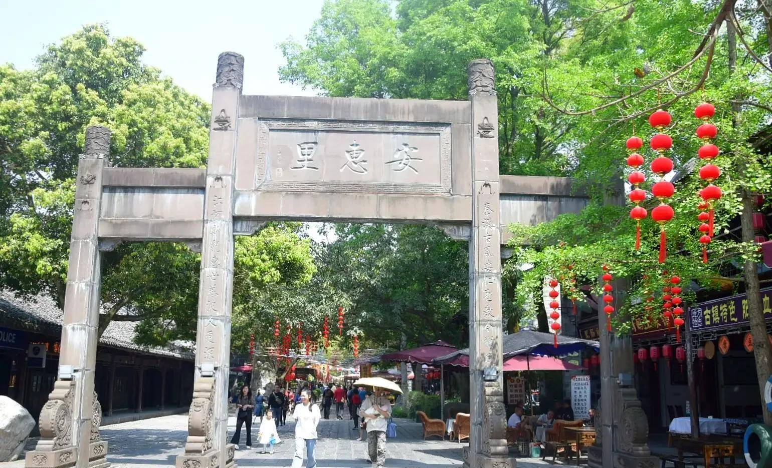 庄园大门外对面的安惠里街巷,倒是人气旺盛、生意兴隆,喝茶、吃饭的几乎座无虚席。