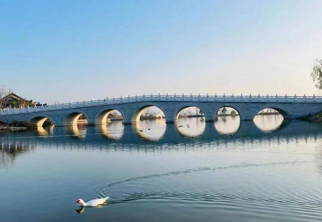 当你呼吸着湿地公园的负离子走进公园的大门,映入眼帘的是颇具特色的标志性建筑苍海展示中心,道路两旁树木葱郁,花儿盛开。登上跨湖木栅大桥放眼望去,湖面壮阔,蔚蓝壮观,烟波浩渺,一望无际。湖面水波潋滟,空中白鹭盘旋,蔚蓝的天空中飘荡朵朵白云,美丽如画,令人仿佛置身于仙境。