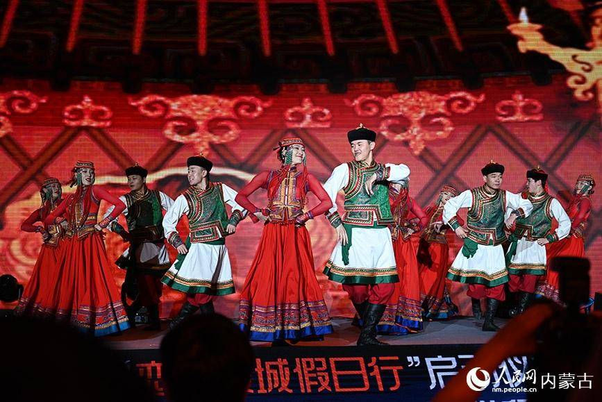 推介会现场,乌兰牧骑队员表演《鄂尔多斯舞》。人民网 刘艺琳摄