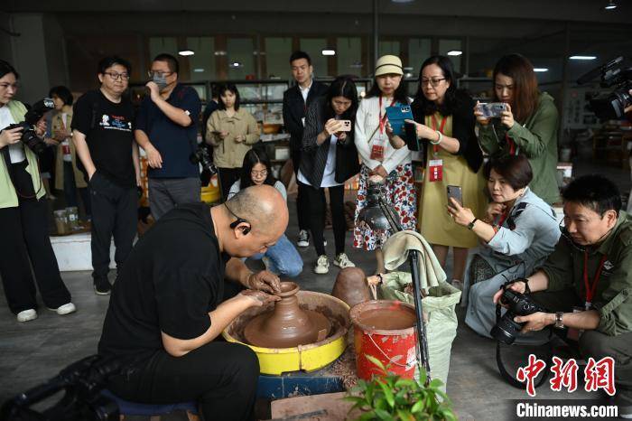 海外华文媒体嘉宾参访制作安陶的过程。 陈超 摄