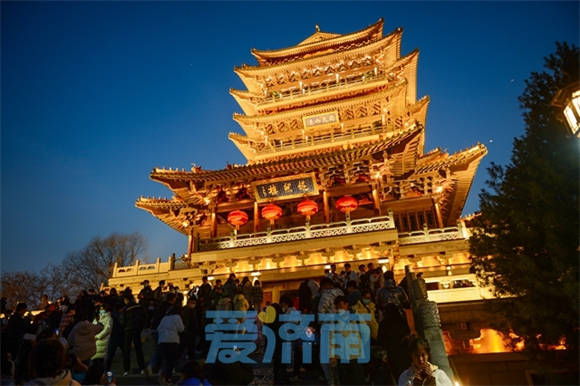 泉城春意盎然,市民游客们的出游意愿大大提升,济南各大景点人山人海。千佛山、趵突泉、美术馆、大明湖,特别是大明湖超然楼亮灯,俨然成了年轻人追赶潮流的时尚风向标,每晚超然楼亮灯瞬间,现场听取“哇”声一片,游客们纷纷举起手机录制小视频、拍照,记录着精彩一刻。“你一句春不晚,我就到了真济南”“总要来一次超然楼吧”等词条频频登上社交媒体热搜榜单。越来越多的人因超然楼来到济南,认识了济南。