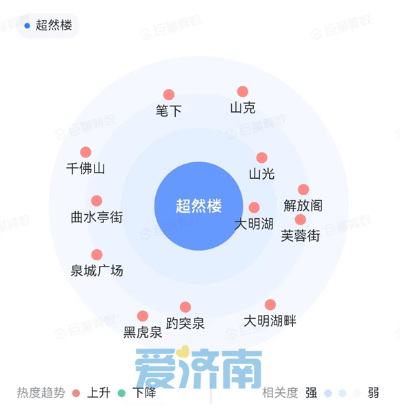 在超然楼持续引爆流量热潮的同时,与济南文旅相关的众多关键词如“大明湖”“山光”“曲水亭街”“芙蓉街”“解放阁”的热度也在持续攀升,人们在讨论超然楼时,关注点已不仅仅局限在“亮灯”这一充满仪式感和参与感的环节,而是更愿意深度体验济南的各种生活场景,在游玩中感受独属于这座城市的品格和文化内涵。外地远道而来的游客在亮灯后,又去了哪里?他们大概率不会立刻离去,而是欣赏大明湖的夜色,尝尝芙蓉街的美食,或是与好友走进附近的商场夜市逛街购物,感受济南这座城市的夜生活,一个新的文旅价值闭环就此形成。