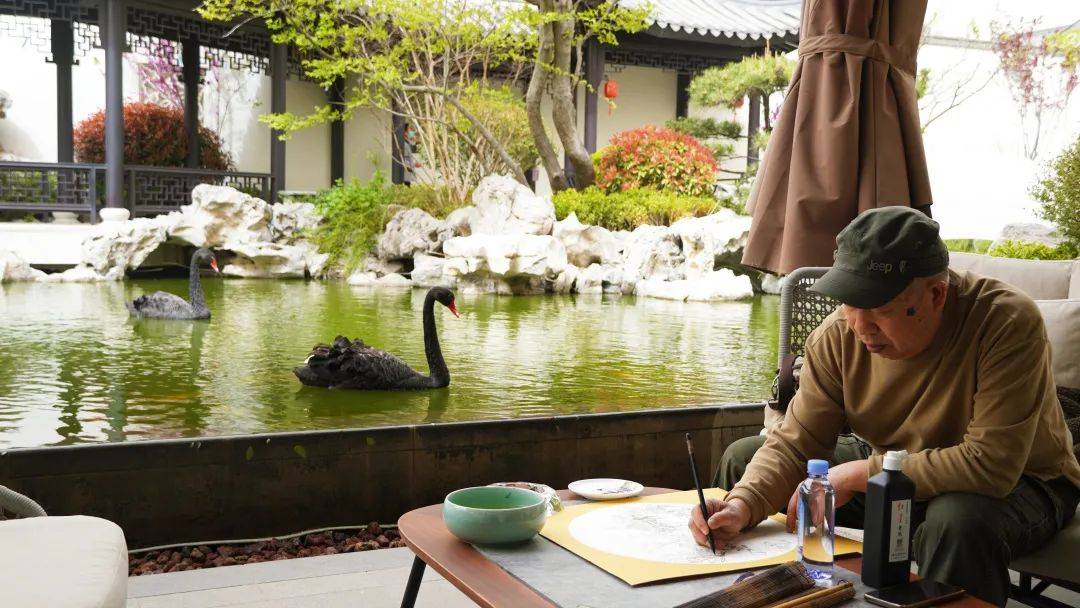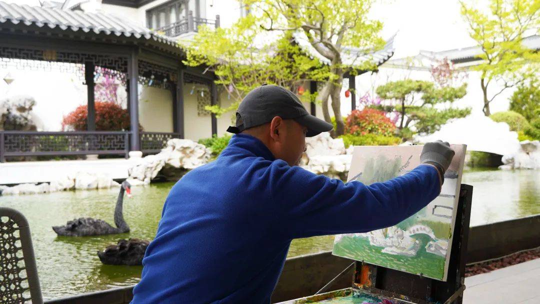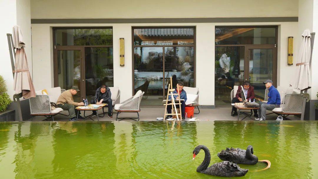粉墙黛瓦,春色满园;天鹅池畔,诗情悠游。艺术家们投身自然,一点一墨,一描一画,不止于眼前景观的复刻,更是对诗意自然的人文表达。山湖院落,一砖一瓦,一花一木,都有了艺术的温度。而入画的又何止是一个“美”字,更是艺术家对自然万物的珍视。