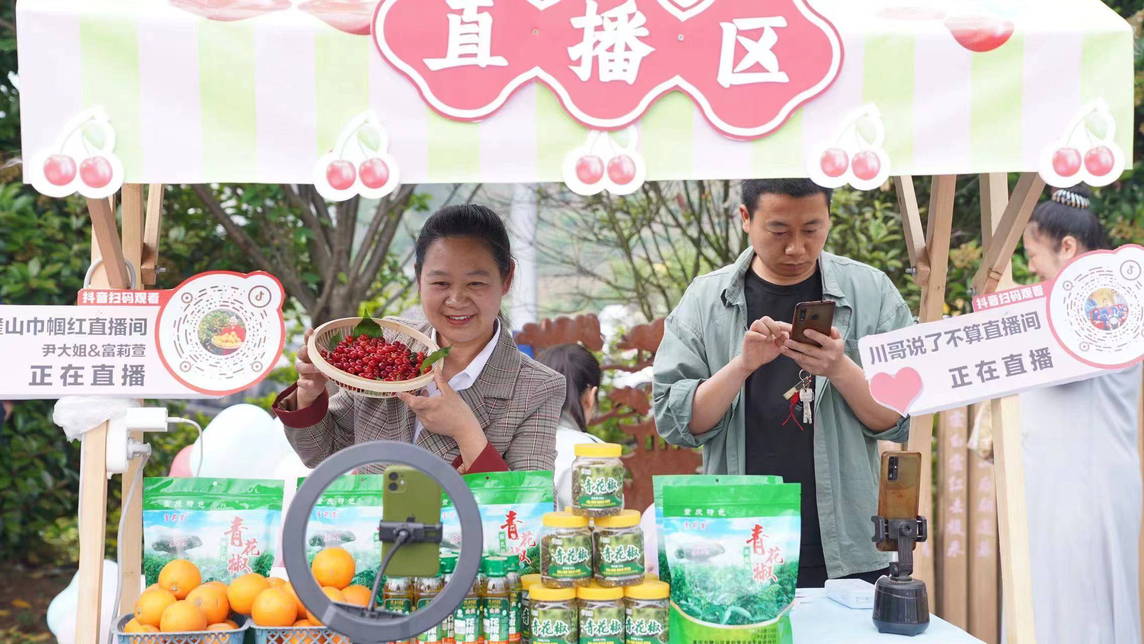 本届樱桃采摘节在凉水村樱花广场设置了樱桃集市、油纸伞“长廊”、清水摸鱼等活动项目,现场还设有多个拍照打卡立牌,4月14日至4月30日期间,市民都可以到璧山八塘镇樱桃谷采摘樱桃、游玩体验,还可以通过线上直播间,购买红润可口的樱桃和其他璧山特色农产品。