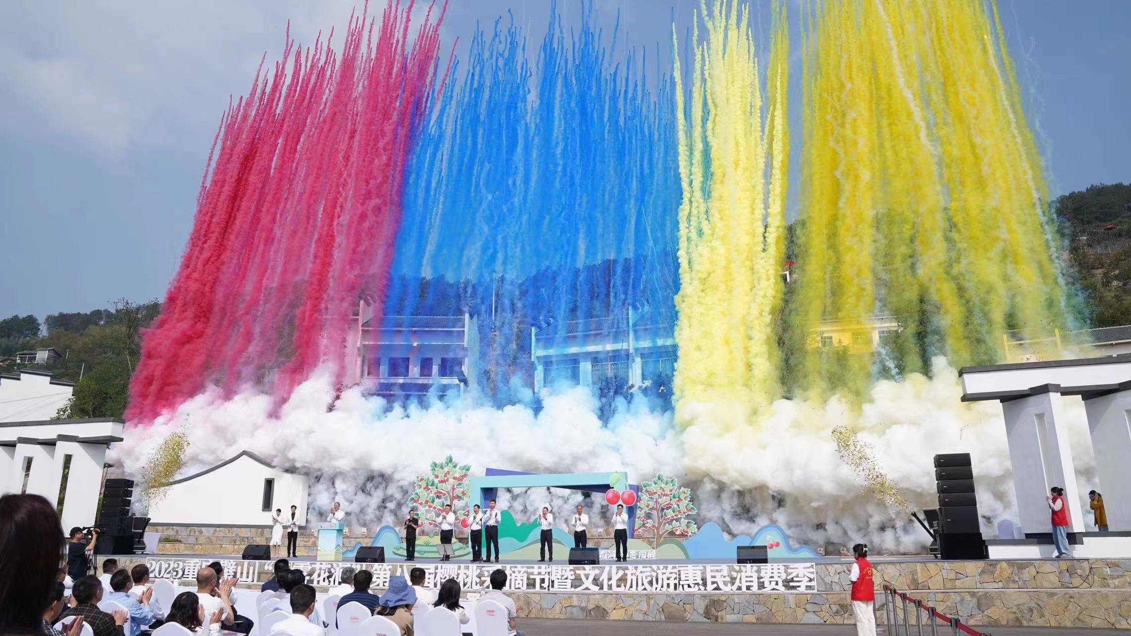 四月樱桃红满枝。“云雾花涧·樱你陶醉”2023重庆璧山“云雾花涧”第八届樱桃采摘节暨文化旅游惠民消费季,于2023年4月14日在璧山区八塘镇云雾山樱桃谷·凉水村樱花广场盛大开幕。璧山区委、区政府相关领导出席开幕式,璧山区副区长万小力主持开幕式,副区长罗志军上台致辞,介绍了璧山区推动乡村振兴,深化农文旅体康融合发展的相关情况。他提到“璧山正打造智慧农业示范基地,绿色农产品加工产业园和蔬菜、柑橘、生态渔“一主两辅”优势特色产业。加快建设“云雾花涧”“茅莱仙境”“研学小镇”“乡愁二郎岗”“石伞云遮”等美丽乡村品牌,推出覆盖四季的农文旅产品,构建吃住行游娱购全链路生态,打造城乡融合新范例。”最后,璧山区区委副书记严兵宣布本届樱桃采摘节暨文化旅游惠民消费季开幕。