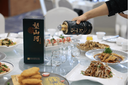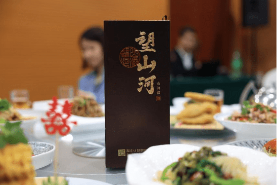 之后还上了云南独特的黄焖鸡、泡椒炒牛柳、宫保鸡丁,还有菠萝饭等等各种好吃的,摆了满满一桌,都放不下了。光有美食还不够,还有美酒,他们用的就是产自贵州的望山河酒,由酿酒大师付宇豪亲自酿造。