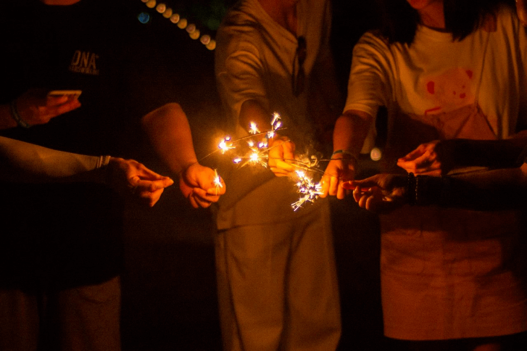微风拂过面颊,杯身碰撞成乐