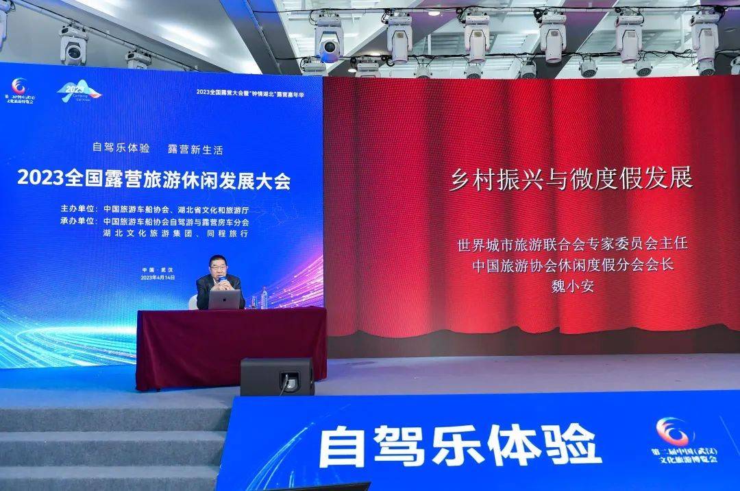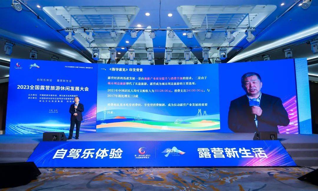 4月14日,由中国旅游车船协会、湖北省文化和旅游厅共同主办,中国旅游车船协会自驾游与露营房车分会、湖北文化旅游集团、同程旅行承办的“2023全国露营旅游休闲发展大会”在武汉举办。文化和旅游资源开发司度假休闲指导处张芃,湖北省文化和旅游厅党组成员、副厅长陈武斌,湖北省各市州文旅局代表,全国省级自驾游房车露营行业协会负责人、协会重点会员企业、旅行商,媒体代表,KOL旅游达人等200余人出席了此次大会。