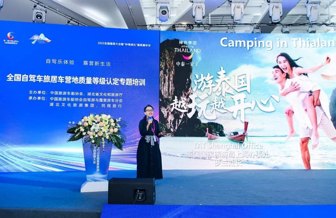 其中,泰国国家旅游局上海办事处处长罗兰带来的《泰国也疯露营!上山下海》分享环节,全面展示了泰国丰富的自然资源,以及特色服务、主题游、文化、美食、露营等旅游的多样性,还表示将进一步升级产品和服务,迎接更多中国游客的到来。