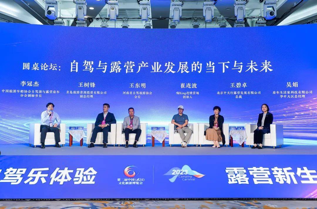 在圆桌对话环节,以“自驾与露营产业发展的当下与未来”为对话主题,青岛旅游资源投资有限公司副总经理王树锋、河南省自驾旅游协会会长王东明、北京中天行露营发展有限公司总裁王碧卓、房车生活家科技有限公司华中大区总经理吴娟、嗨King连锁营地创始人崔连波进行观点交锋,就后疫情时代,旅游新业态产业发展的当下与未来展开共同探讨。对话由分会副秘书长李冠杰主持。