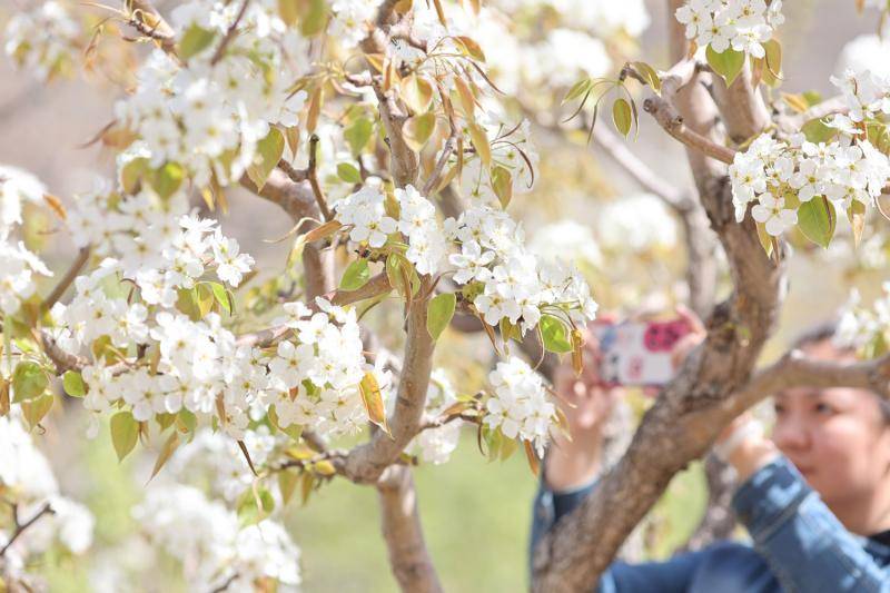 因众多乔木和灌木开花,春天及初夏成为北京的“赏花季”。今天(4月15日)上午,密云区大城子镇“梨花文化节”在张庄子村的梨寨举行,分布在山间台地的上千亩梨树迎来一年当中的“颜值巅峰”。