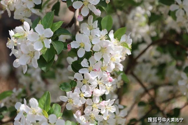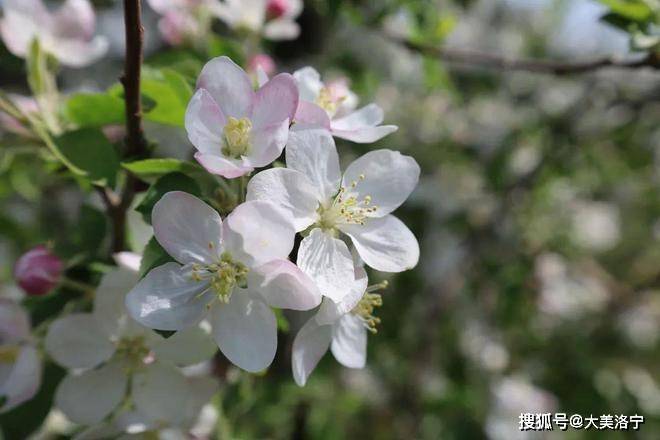 不若牡丹争艳,不与丹桂竞香,不逊梅花一点红,五片薄瓣,苹果花开得恬淡优雅……