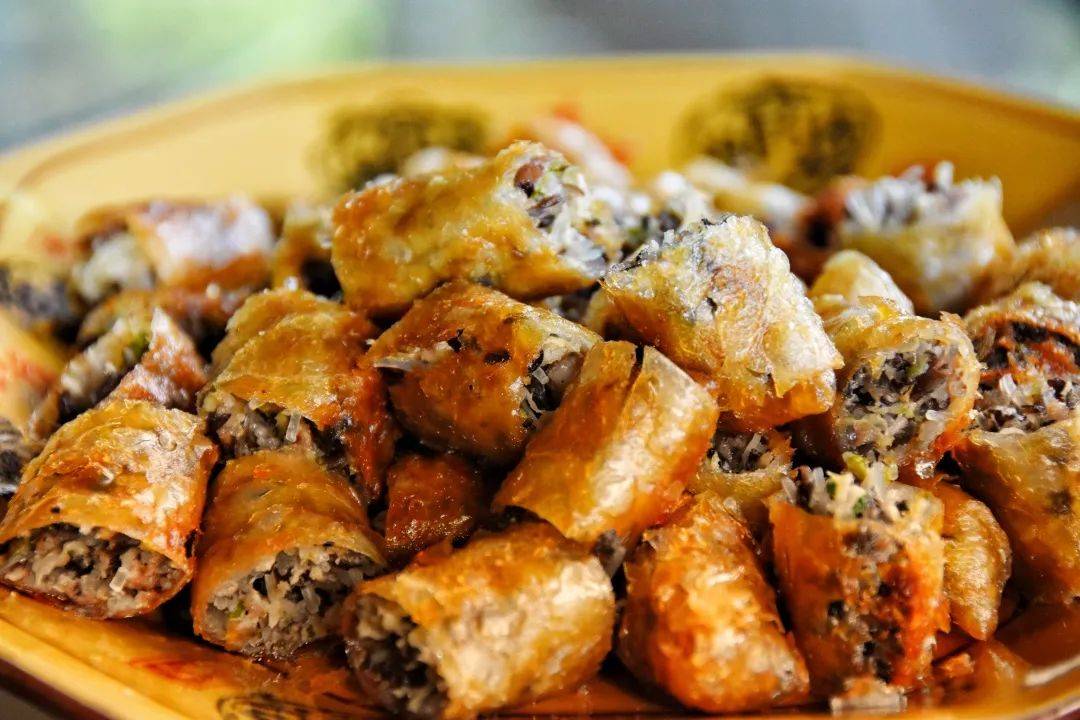 春卷也是一个选择。云南的春卷做法是从民国时期传下来的,自成一派。董超宇告诉我们,特别的地方是制皮,用云南当季的两熟面粉,加上土鸡蛋,一边搅拌一边打成糊状,在平底锅里摊成蛋皮,一张圆形的蛋皮要分成六个春卷皮,这样的春卷皮很是松香。春卷的馅料通常是用甜笋、香椿、香菇和韭菜拌成,都是春天的时新山鲜,一定要加上甜酱油,才能形成云南特有的鲜咸回甜的味道。