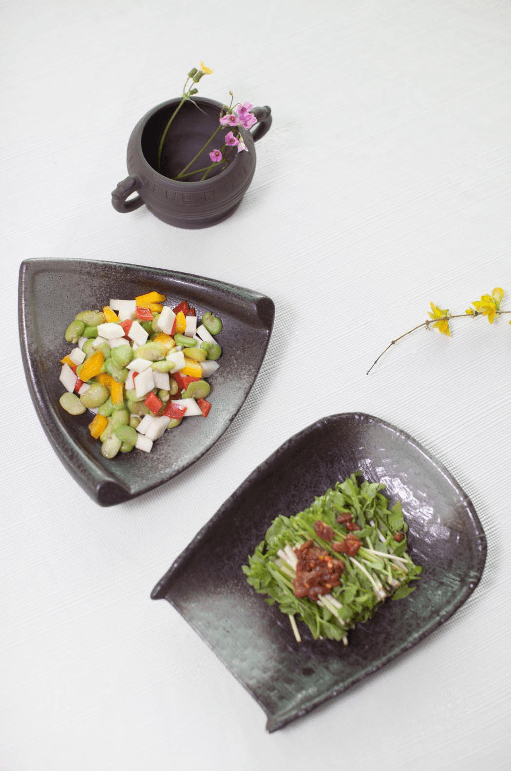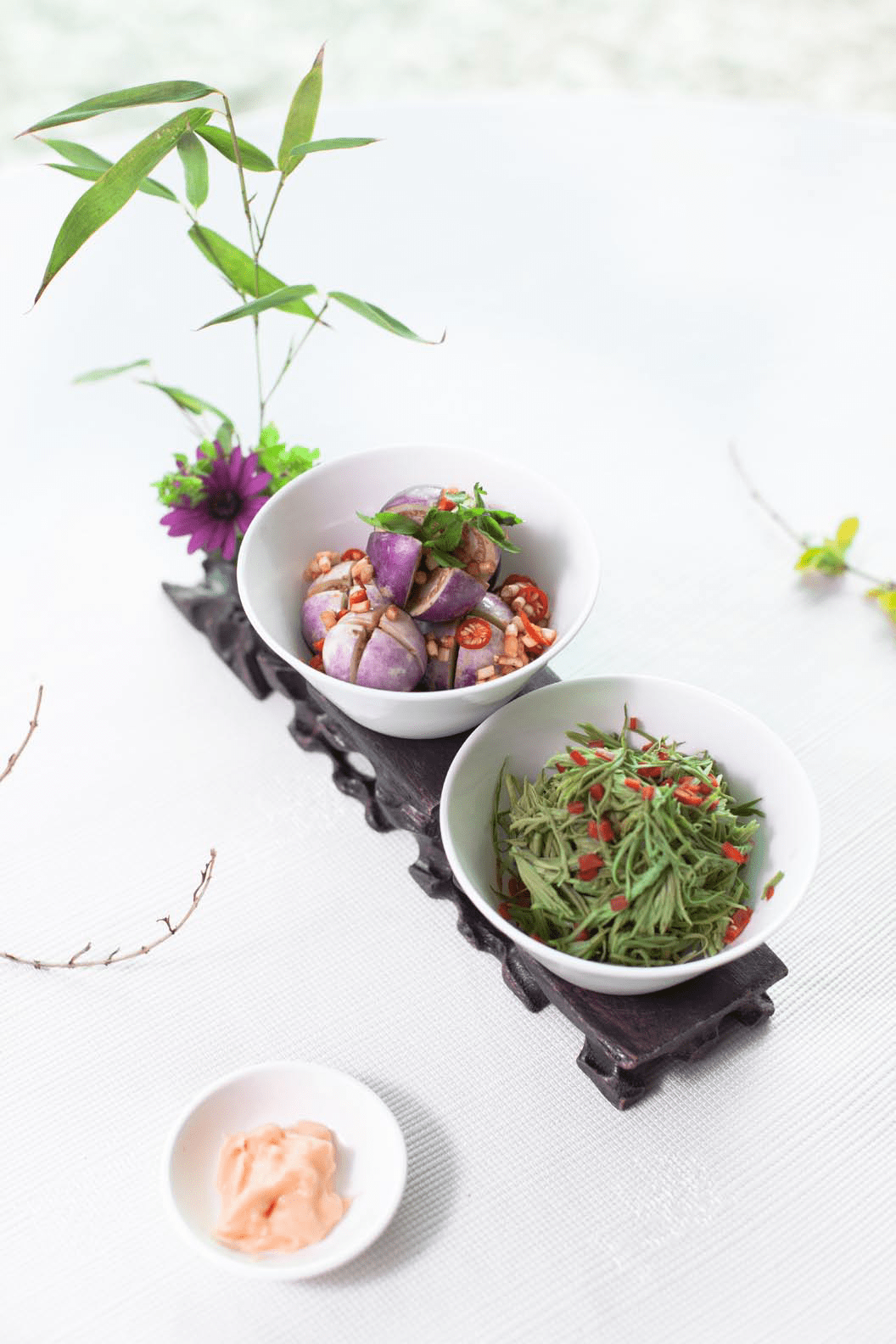 ▲拌野茄子和拌沙松尖(朱墨 摄)
