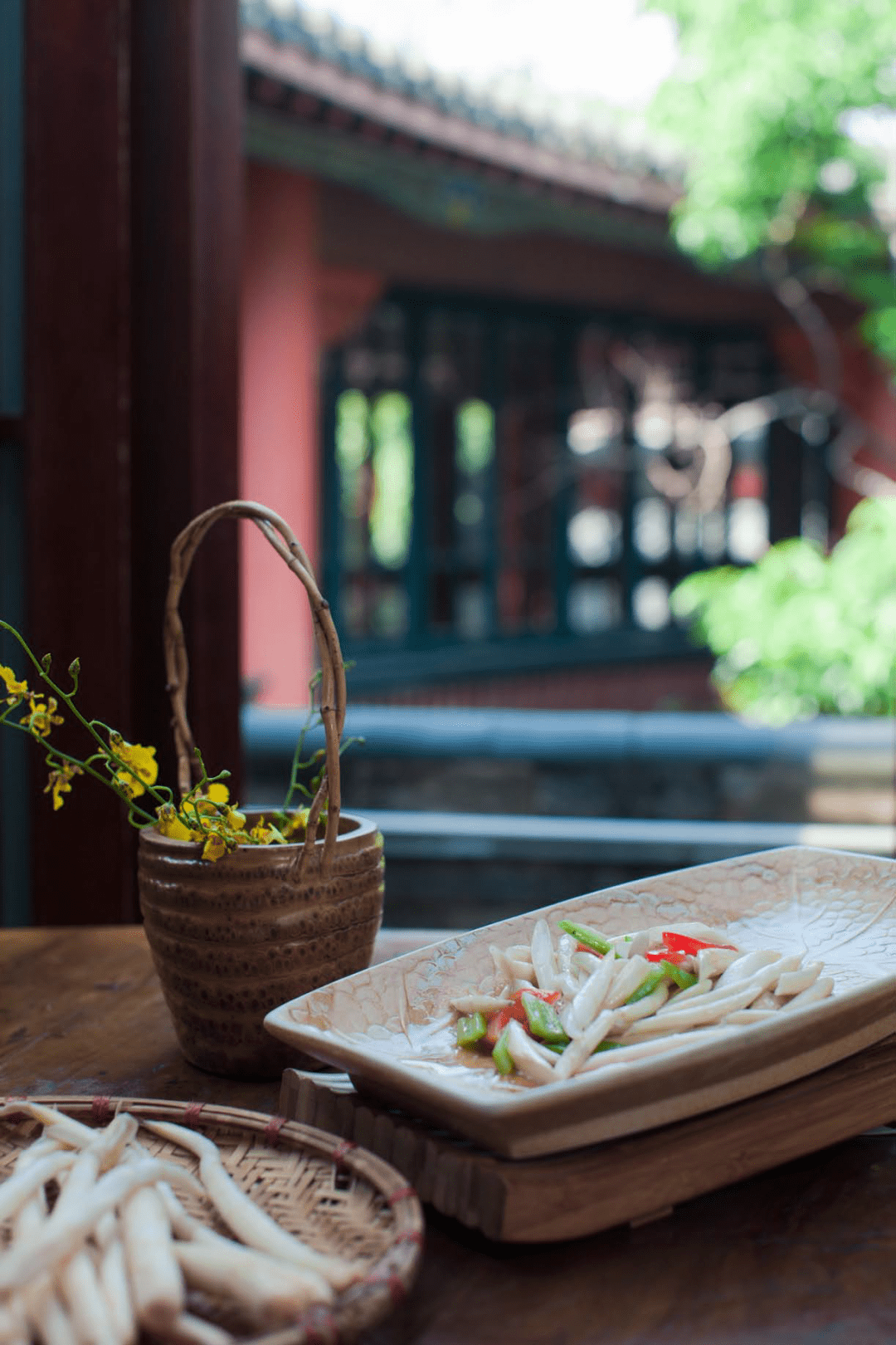 春天里鲜美的蔬菜首推草芽。草芽是一种水生植物,生长习性很特殊,离开水就会发绿变老不能吃,它的外形很像缩微版的象牙,所以也叫象牙菜。草芽是建水独有的蔬菜,王黔生告诉我们,到了红河州,过桥米线里就能看到草芽了。草芽是王黔生爱用的一种食材,他给周恩来总理做菜,用草芽炒鸡丝,这一道菜后来还用在招待印度总理夫妇的宴会上。“印度总理夫妇来中国,菜单上有一道松茸,那时候松茸已经卖到1000块钱一斤,太贵了。负责接待的同志斟酌了一下,觉得如果是招待日本客人就做这个,他们喜欢松茸,其他国家的人不一定认识,我们就换成了草芽炒鸡丝。结果吃得印度总理夫人一直在赞叹。”王黔生说。