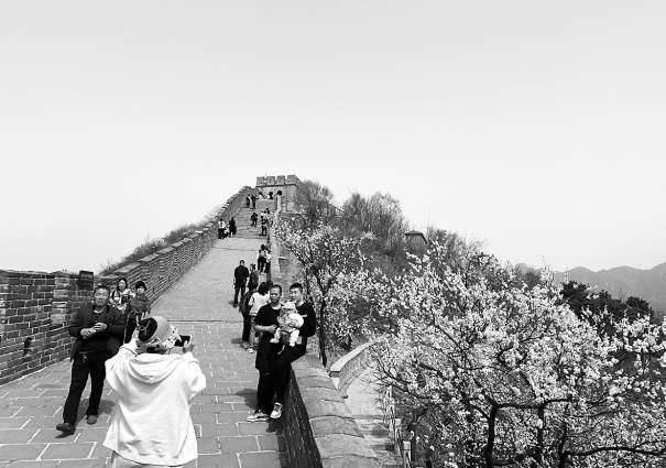 昨天上午,游客在八达岭长城尽情享受春日时光。潘福达 摄