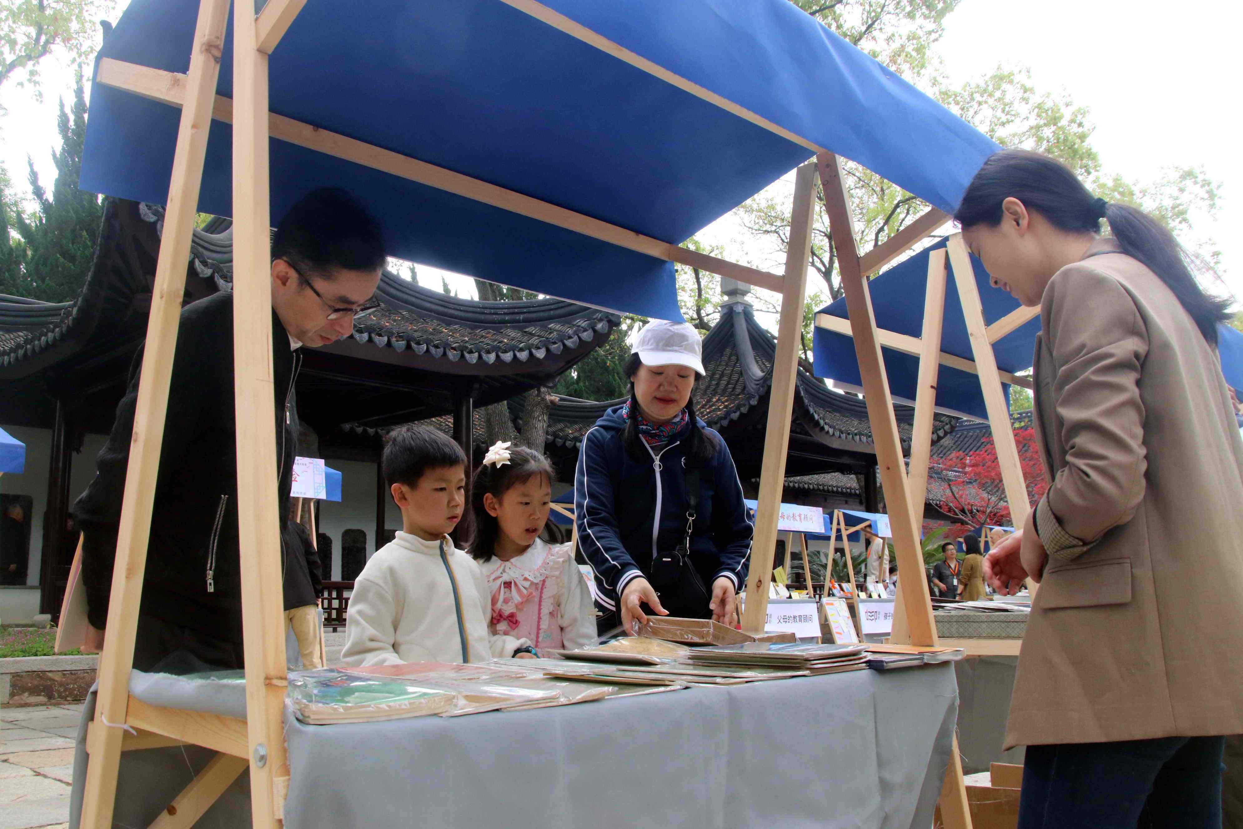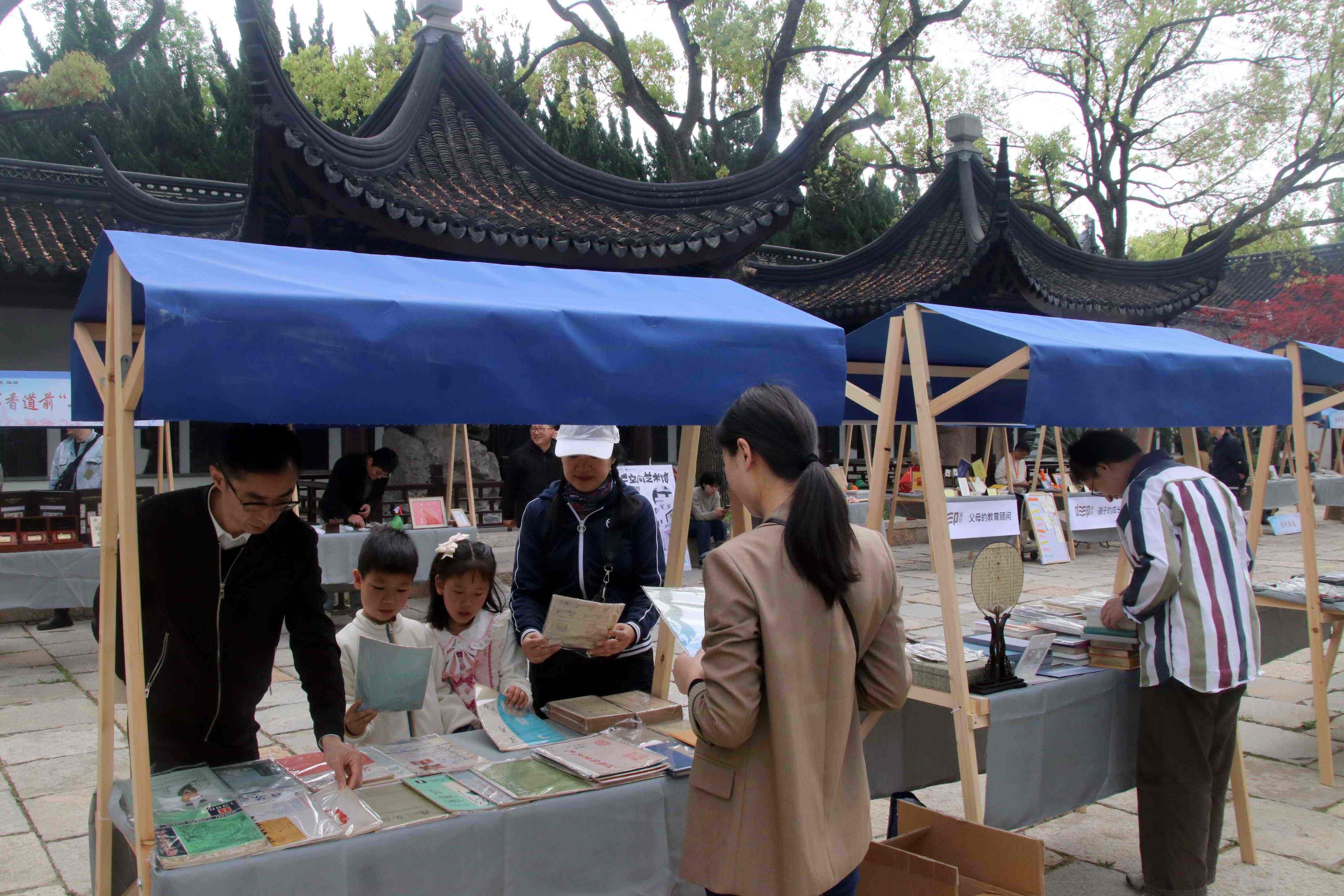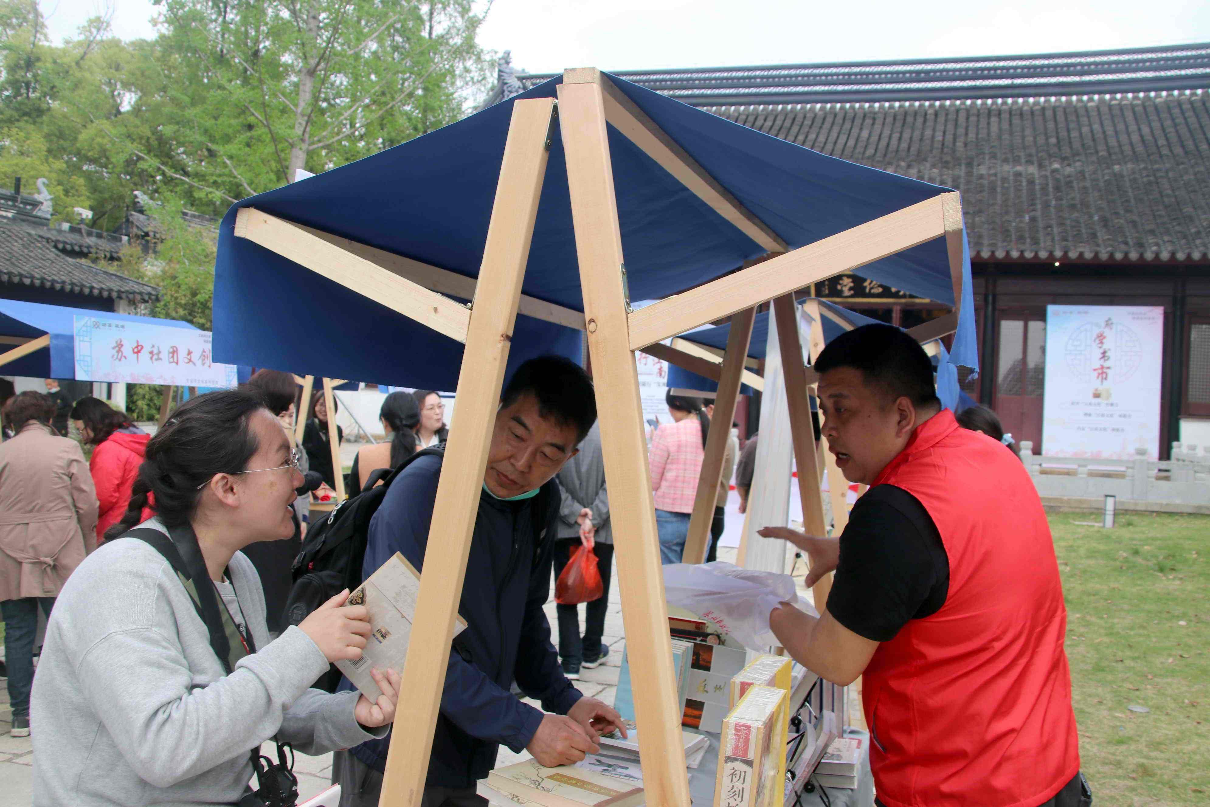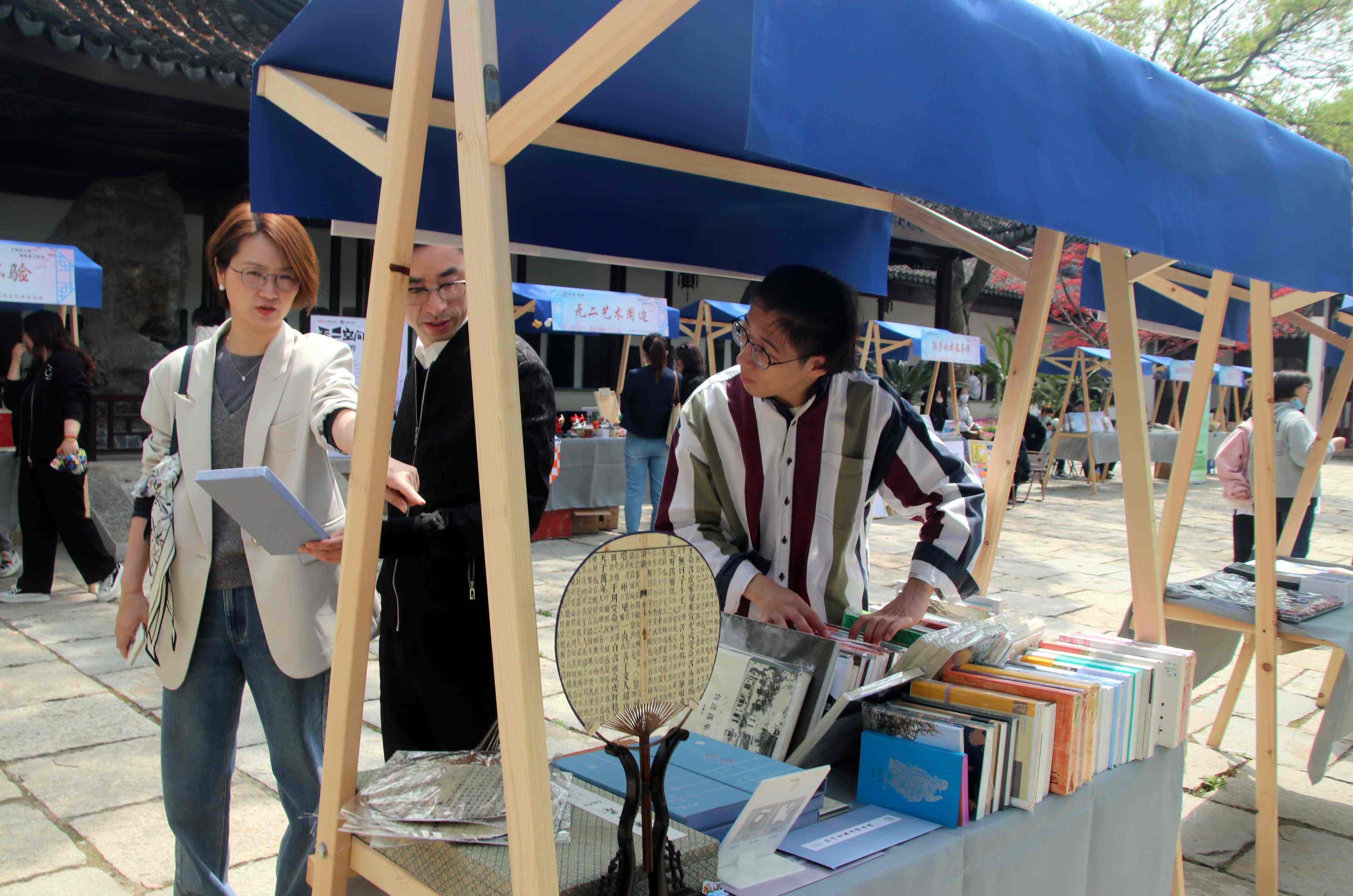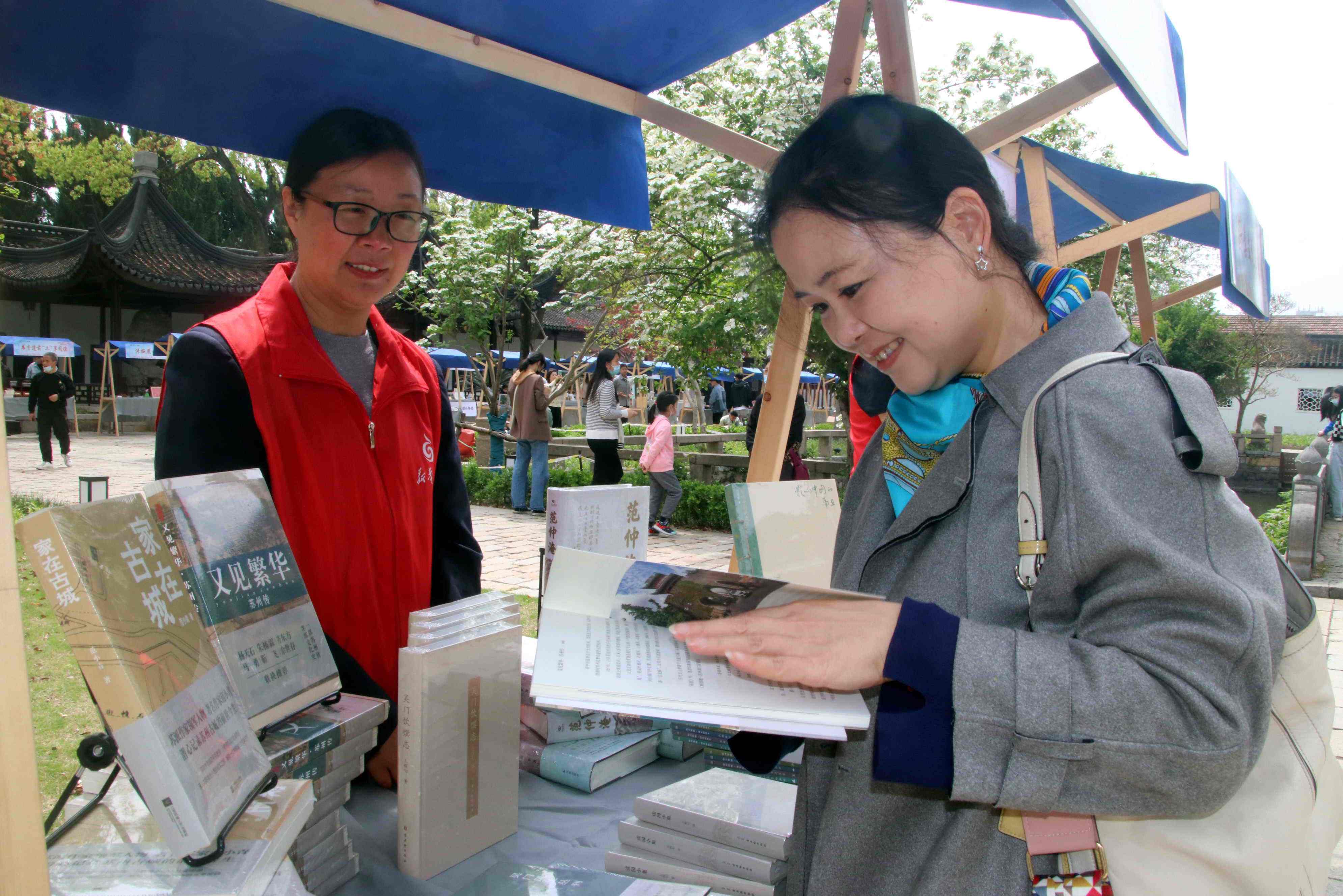 “府学书市”是“阅读随行‘发现’计划”系列活动的首场活动。在苏州文庙明伦堂前,苏州知名的出版社、书店、美术馆等文化单位带来30个书籍摊位,集结了古早杂志、家庭教育书籍、文创产品等多种品类书籍和衍生物品,再现宋代以来苏州书香文脉,还原千年前宋代苏州书肆林立、书香袅袅的盛丽景象。在“葑溪文化书籍”摊位前,《葑溪访谈》等主题书籍吸引了许多市民翻阅。“这里的书籍品类丰富,旧书好书云集,还有孩子们喜欢的趣味图书和图书盲盒。”市民虞敏笑着说,来书市逛逛,感受到了“书海拾遗”的淘宝之乐。
