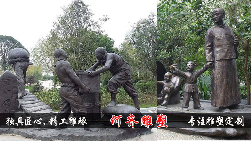 商业步行街人物铸铜雕塑,古街民俗文化铜雕像,广场步行街人物雕像厂家,码头搬货雕塑摆件