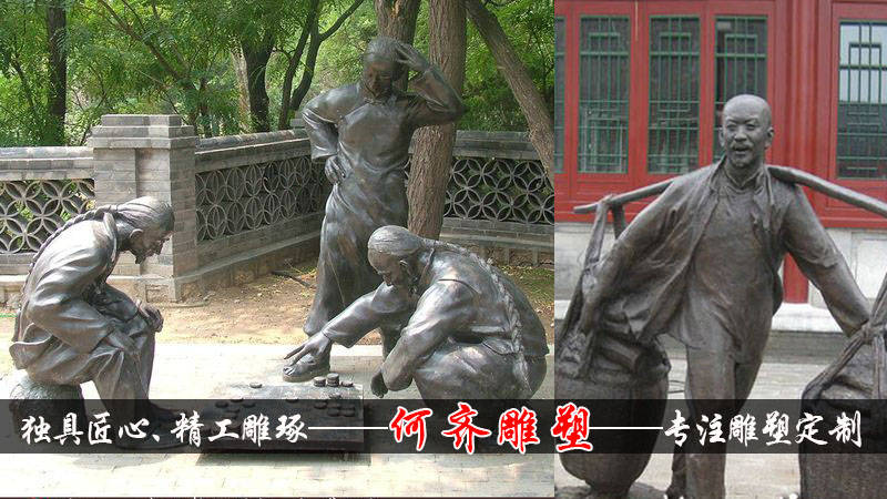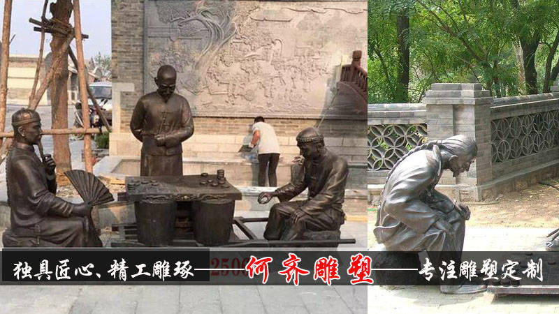古街文化铜雕像,广场步行街人物雕像厂家,民俗文化铜雕 ,下棋雕塑