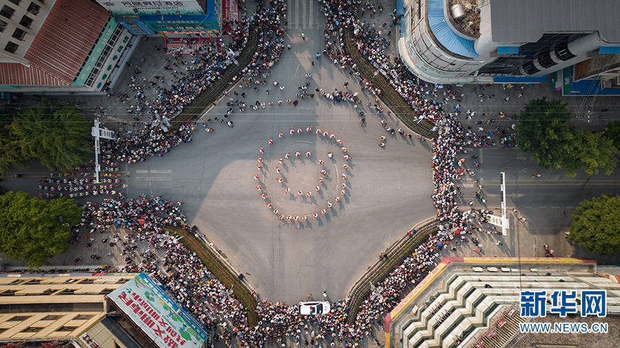 航拍云南景谷采花泼水节千人赶摆(4月14日摄)。新华网 刘东 摄
