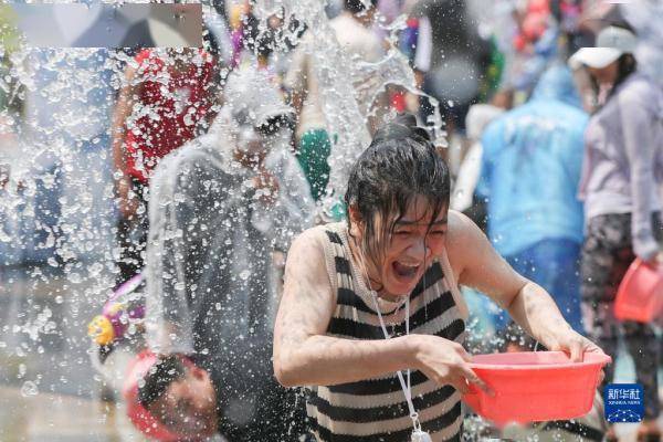 4月15日,人们在云南省西双版纳傣族自治州景洪市泼水广场泼水狂欢。