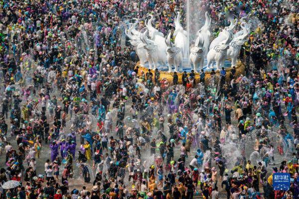 当日,云南省西双版纳傣族自治州举行傣历新年取水仪式及泼水狂欢,数万名各族群众和游客在景洪市用相互泼水的方式互送祝福、传递欢乐。