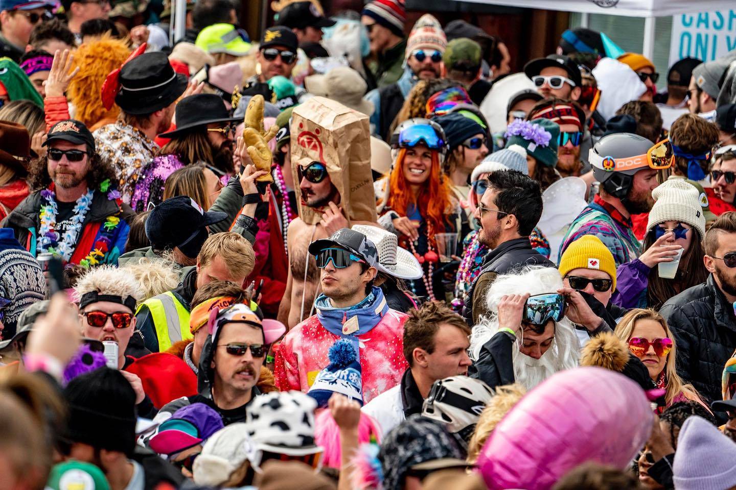 奇装异服、短板、轻巧的太阳镜是阿斯本高地收官日的标配,最喜爱这座雪山的当地人为这里的派对带来了无尽活力。