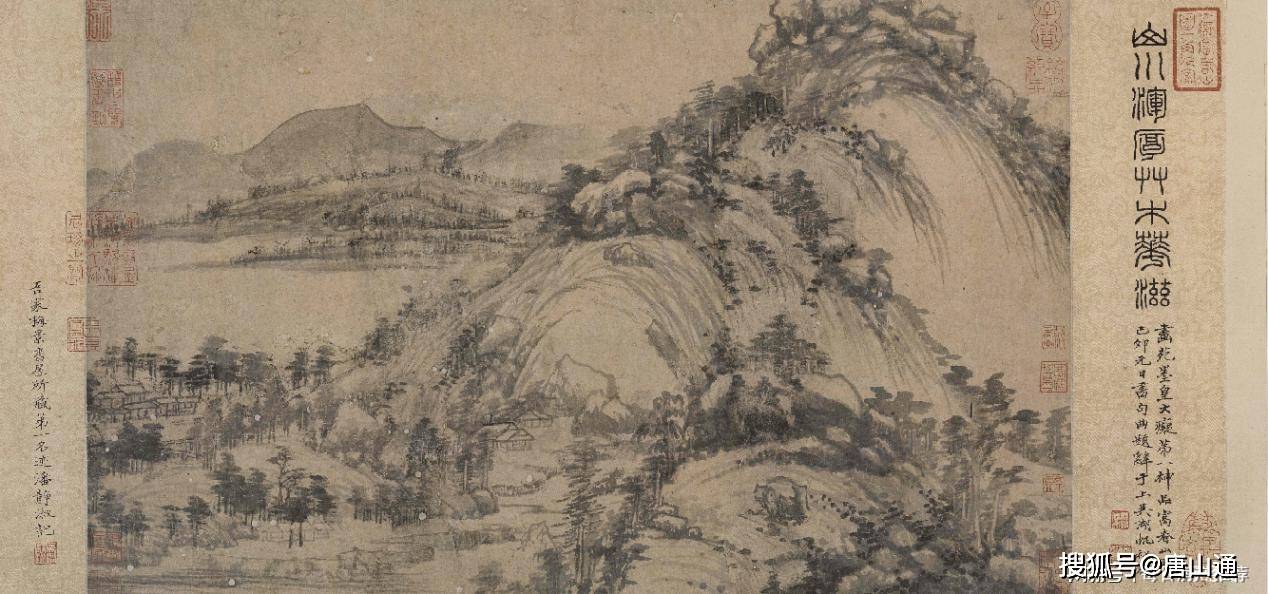 近景坡岸水色,峰峦冈阜, 陂陀沙渚,远山隐约,徐徐展开,