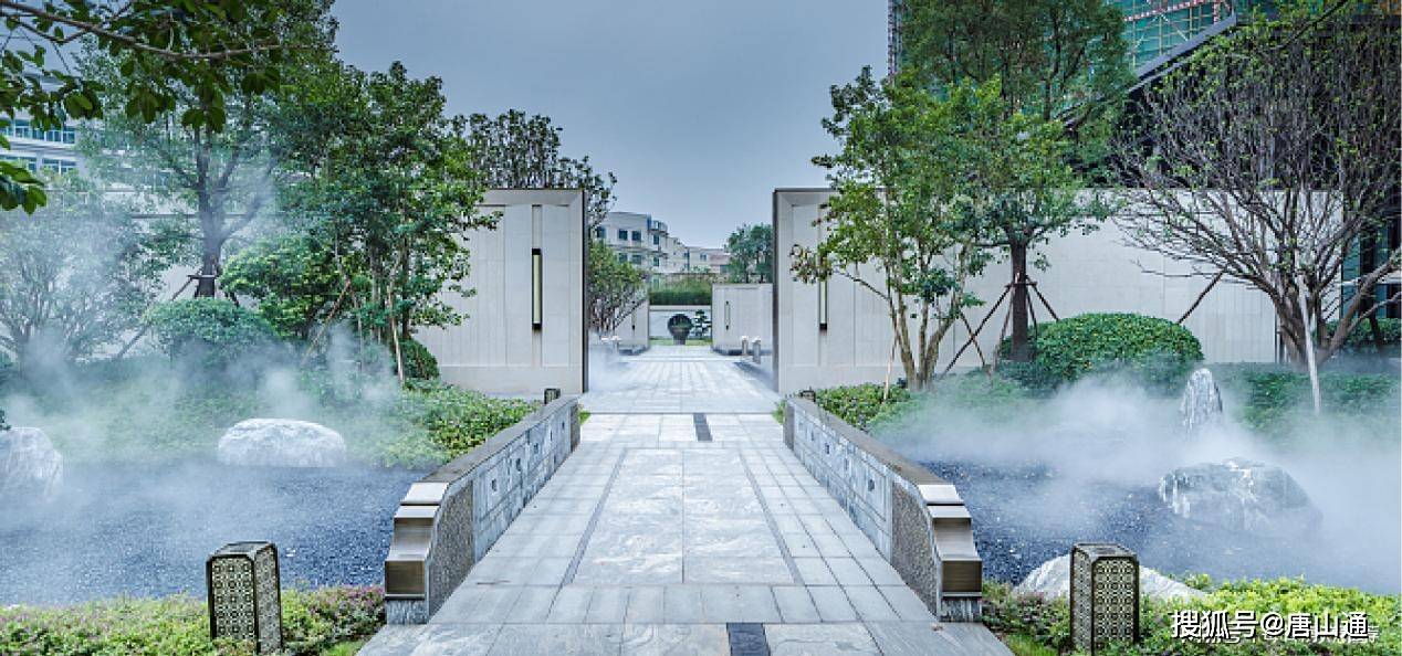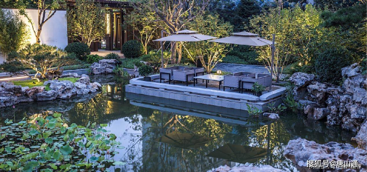 8米宽水景logo墙、小型喷泉水景、庭院门扉、300㎡楼间会客厅……