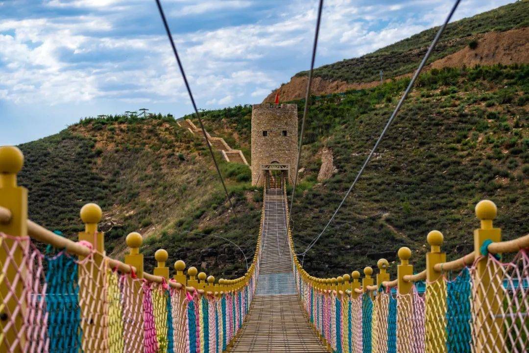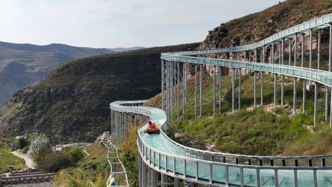 也有玻璃水滑道、悬空观景台、崖壁秋千让你畅快游玩。玩累了,窑洞酒店、峡谷雅宿随时都能得到体力补充,小憩片刻,四合院餐厅也备有特色美食等你品尝。